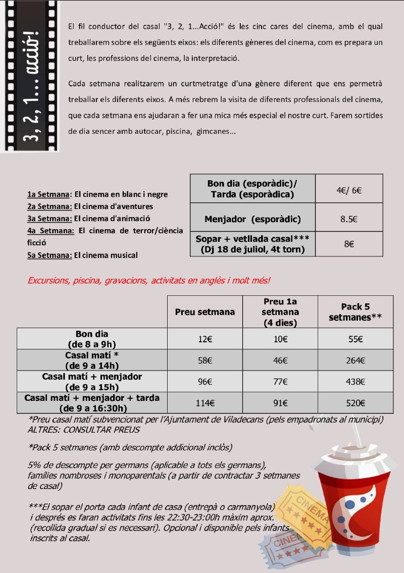 Us presentem tota la informació del Casal d’estiu 2024: LES 5 CARES DEL CINEMA