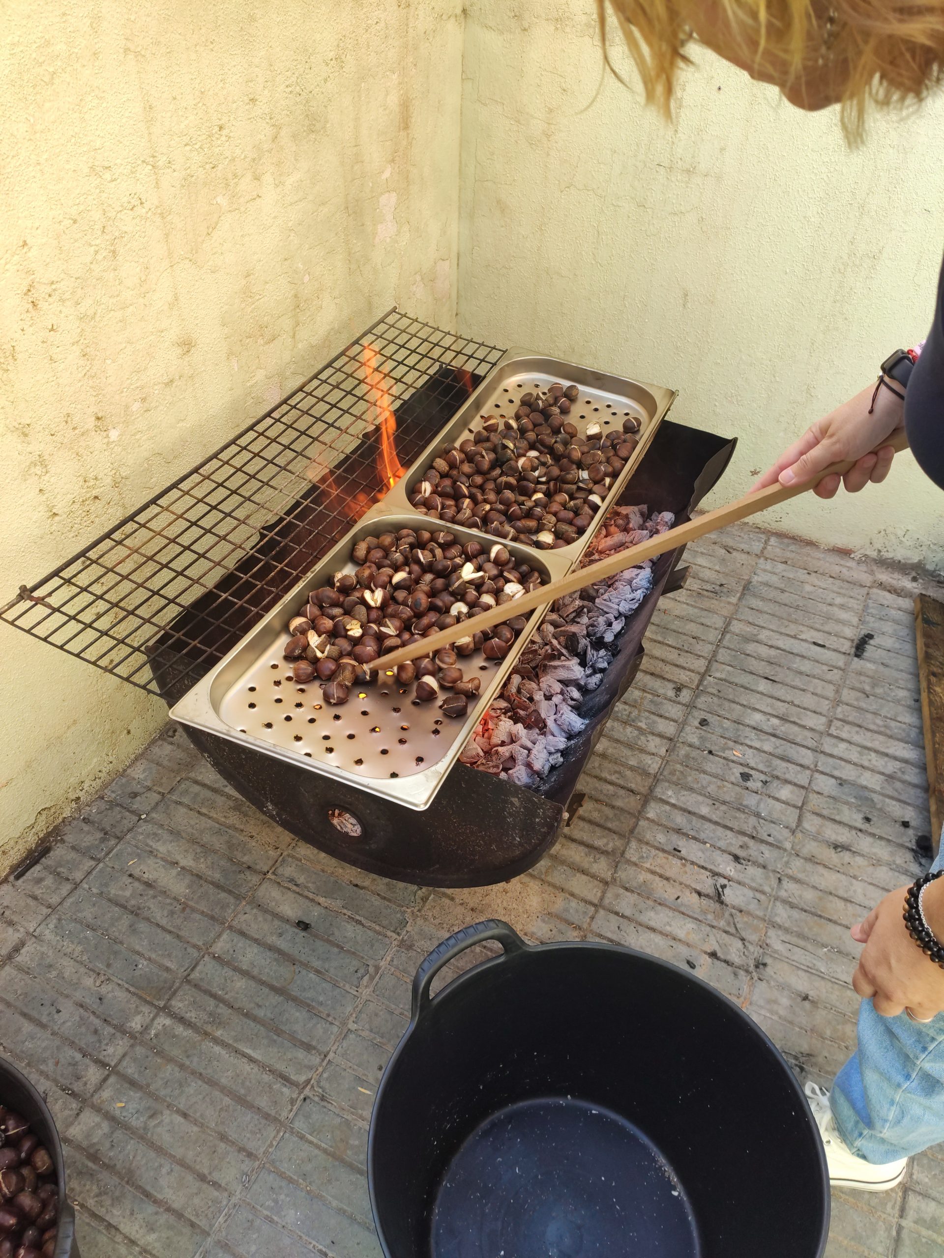 Un any més, i com mana la tradició, hem cridat a CASTANYERES I CASTANYERS per a que reparteixin castanyes calentetes als infants de l’escola. Però abans de gaudir de les castanyes, els que es van quedar a dinar al menjador van gaudir d’un bon àpat de tardor i d’unes xips de moniato espectaculars!!